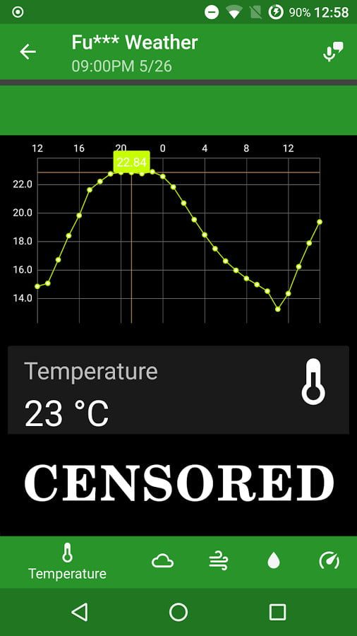 Puedes activar o desactivar las groserías, y como aplicación para el clima es bastante decente, con la capacidad de pronosticar el clima hasta siete días por adelantado y proporcionar pronósticos por horas para dos días.