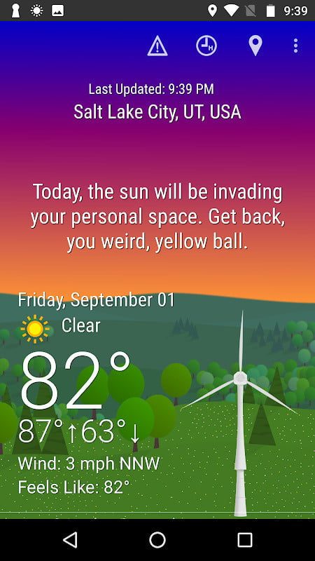Admitámoslo, consultar el clima no es lo más divertido del mundo… pero podría serlo. What the Forecast?!! te platica el clima en términos reales, con comentarios graciosos como “¿Será clima para usar un sombrero fedora? No, nunca es clima para usar un sombrero fedora”, junto con algunos datos meteorológicos más comunes. Esto te mantiene informado del clima mejor de lo que creerías, y reírse un poquito de los comentarios es agradable. Otra cosa agradable es que es gratis.