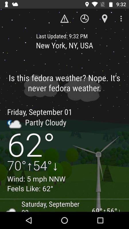 Admitámoslo, consultar el clima no es lo más divertido del mundo… pero podría serlo. What the Forecast?!! te platica el clima en términos reales, con comentarios graciosos como “¿Será clima para usar un sombrero fedora? No, nunca es clima para usar un sombrero fedora”, junto con algunos datos meteorológicos más comunes. Esto te mantiene informado del clima mejor de lo que creerías, y reírse un poquito de los comentarios es agradable. Otra cosa agradable es que es gratis.
