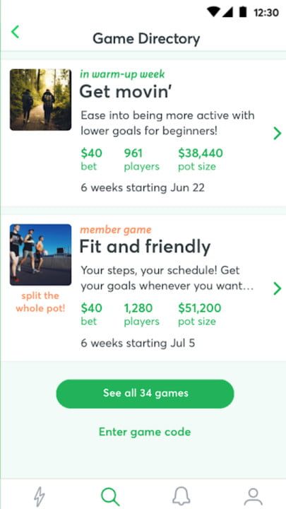 StepBet te paga por hacer lo que haces todos los días: caminar. Al igual que DietBet, te haces una apuesta a ti mismo y si logras tu objetivo, dividirás el bote con otros participantes en el juego. No tienes que moverte más o por más tiempo que los demás en el juego, solo tienes que alcanzar tus metas y retirar dinero. StepBet utiliza un algoritmo de firma para proporcionar a cada jugador los objetivos de pasos diarios, y contará automáticamente tus pasos soportando varios dispositivos, incluidos los de Apple, Fitbit y Garmin. Todo lo que tienes que hacer es caminar, escalar o incluso bailar, cualquier cosa para lograr tus pasos y alcanzar tu objetivo.
