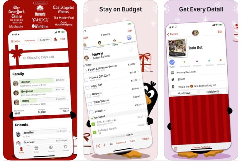 Esta es una aplicación muy útil que te ayudará a hacer un seguimiento de tus compras navideñas. Haz una lista de todas las personas para las que necesita comprar regalos y luego fija un presupuesto. Por ejemplo, agregas un amigo: entrarás en una tienda, tocarás el su nombre en la lista y verás los artículos que deseas comprar para esta persona y, por supuesto, el presupuesto. Luego vas tocando los artículos a medida que los compras, y cuando vuelves a la pantalla principal, puedes ver cuánto te queda para gastar en tus regalos. Por $3 dólares, es una excelente manera de hacer un seguimiento de tus compras y, lo más importante, de no excederte en tu presupuesto.
