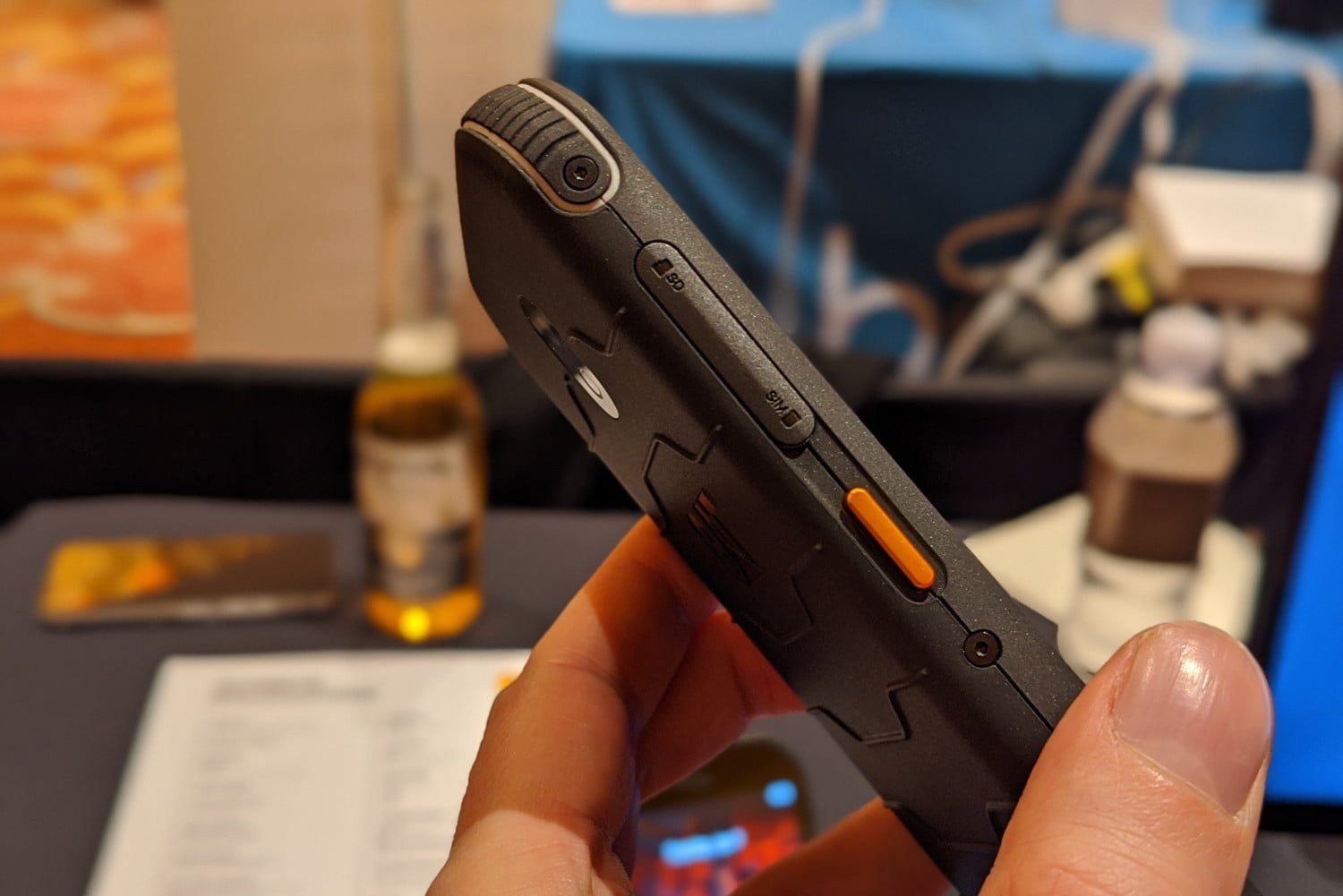 Su pantalla táctil de 5.5 pulgadas fue diseñada especialmente para ser usada al aire libre y en situaciones deportivas, y puede ser utilizada con guantes o manos mojadas. Además, la textura de su resistente cuerpo ayuda a darle un mejor agarre y sus botones son macizos y bien definidos. Incluye una tecla de atajo programable que puede usarse para la función de presionar para hablar (PTT) o para abrir una aplicación.