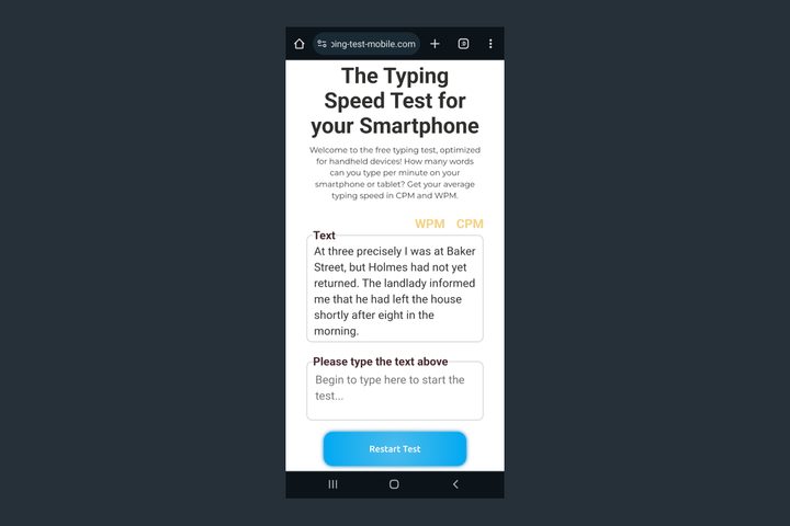 En el sitio web Typing Test Mobile, puedes realizar una prueba gratuita de velocidad de escritura en tu celular, y así obtener tu puntuación de palabras por minuto (PPM). De acuerdo con un estudio académico de mecanografía, la velocidad media de escritura en un dispositivo móvil es de unas 38 PPM, para que lo tengas en consideración.