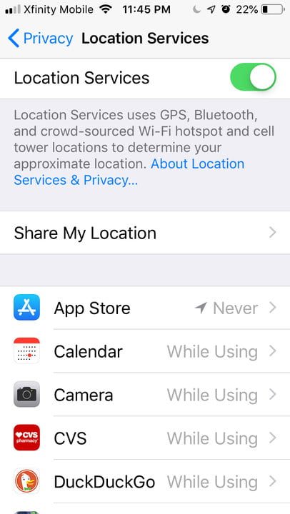 En un iPhone, dirígete a Configuración> Privacidad> Servicios de ubicación y escoge las aplicaciones pueden usar la ubicación siempre, cuando está en uso o nunca. También puedes alternar el widget de ubicación de Android desde el mosaico de Configuración rápida.
