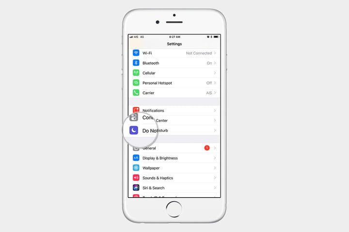 Paso 2: Abre la configuración Do Not Disturb (No Molestar). Entra a Configuración, luego pulsa Notificaciones y selecciona la opción Do Not Disturb (no molestar) que se ubica arriba en la lista