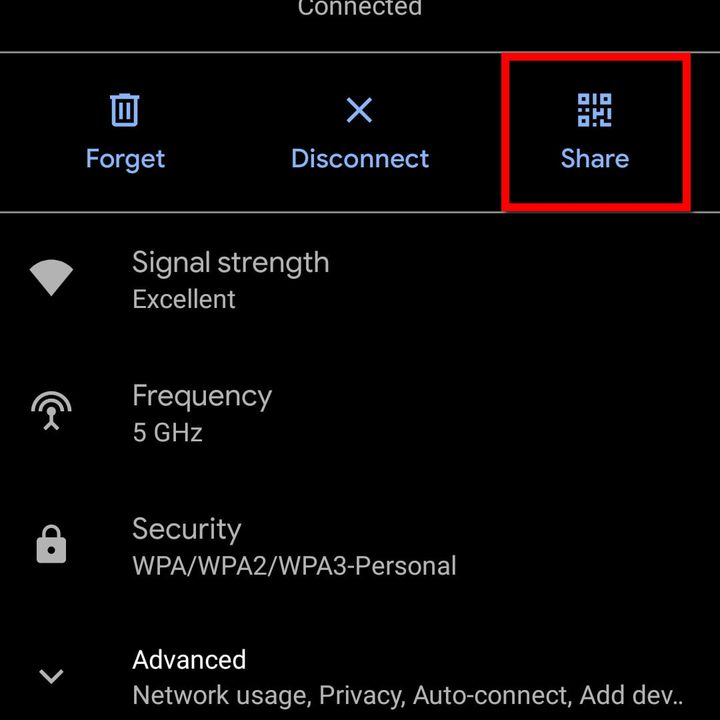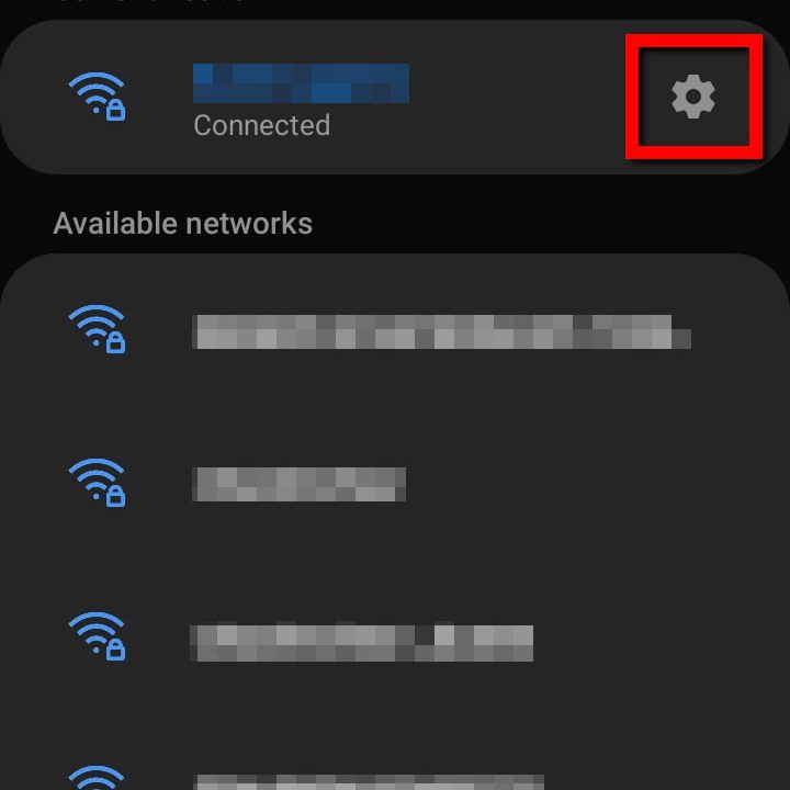 Paso 4: marca el ícono de engranaje junto a la red que deseas compartir.