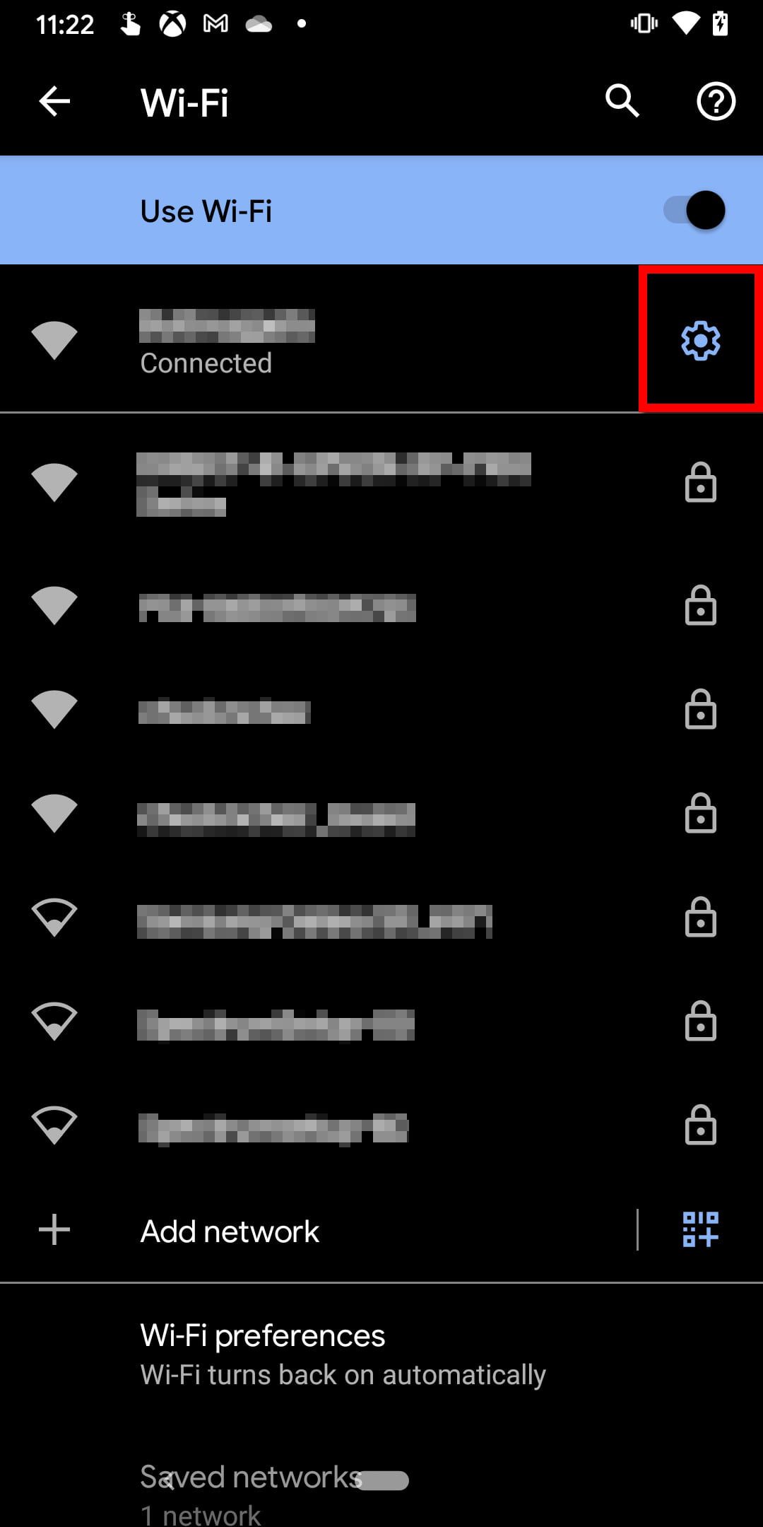 Paso 4: marca el ícono de engranaje junto a la red que deseas compartir.