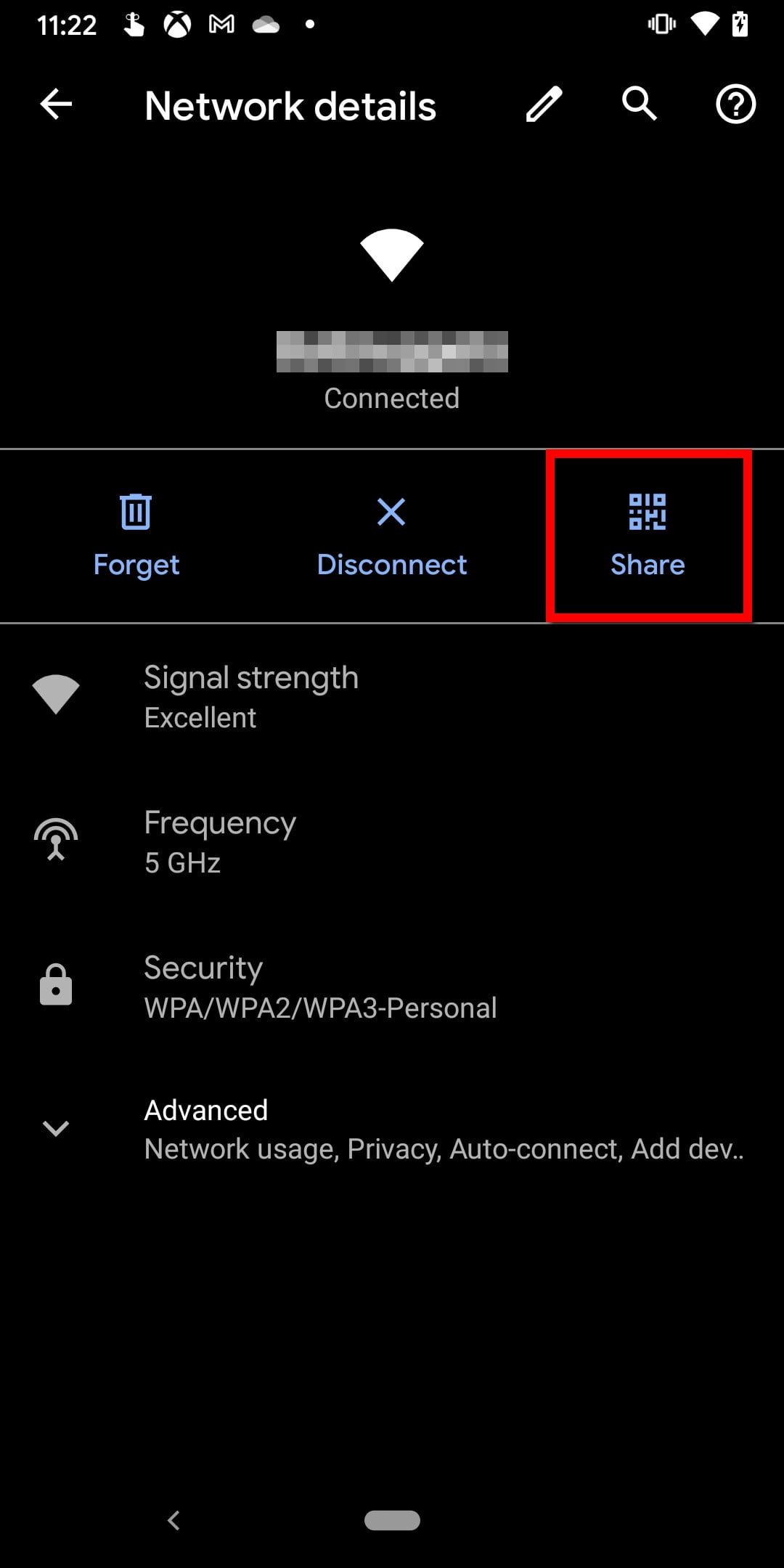 Paso 4: toca el ícono de engranaje junto a la red que deseas compartir.