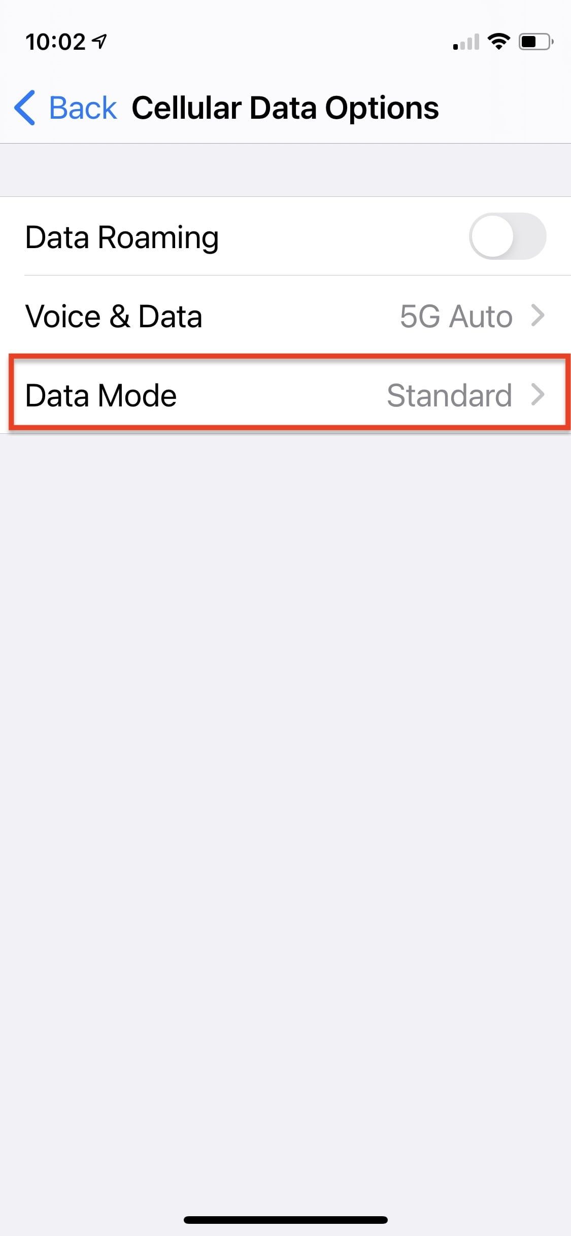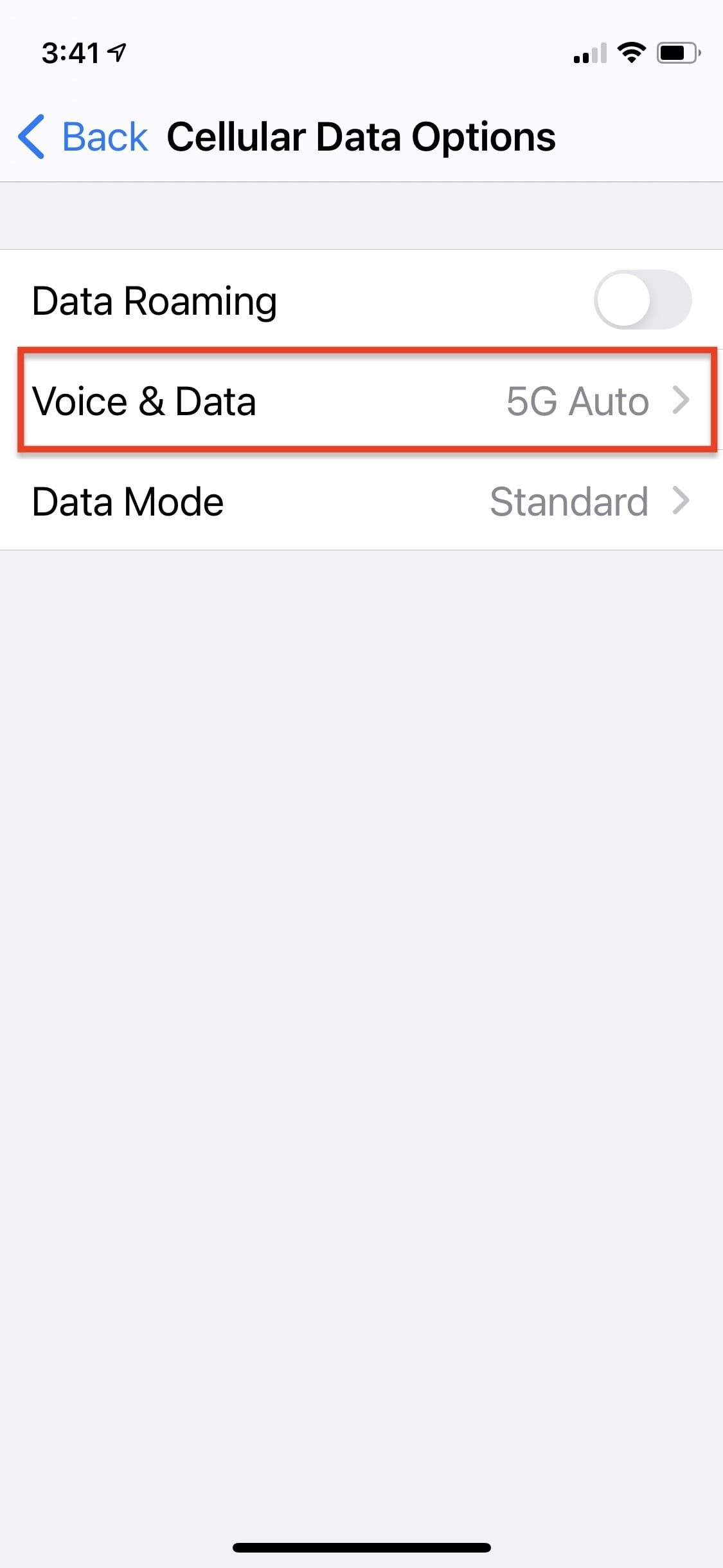 Paso 3: Toca Voz y datos. Lo más probable es que esté en la configuración 5G Auto.