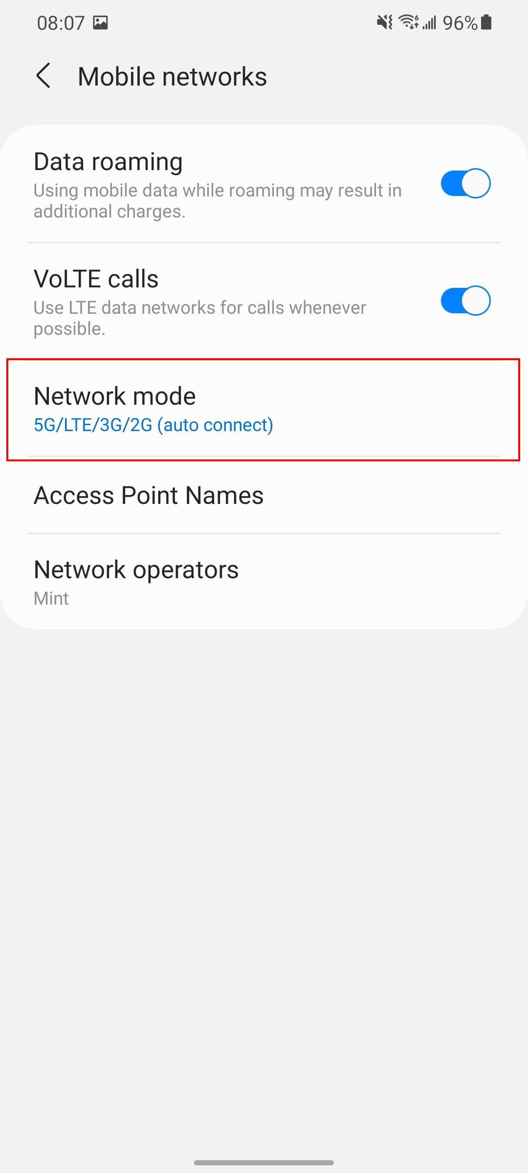 Dependiendo de tu red, podrías encontrar solo dos opciones disponibles en Modo de red, Manual y Automático. Si este es el caso, es posible que no puedas apagar el 5G.