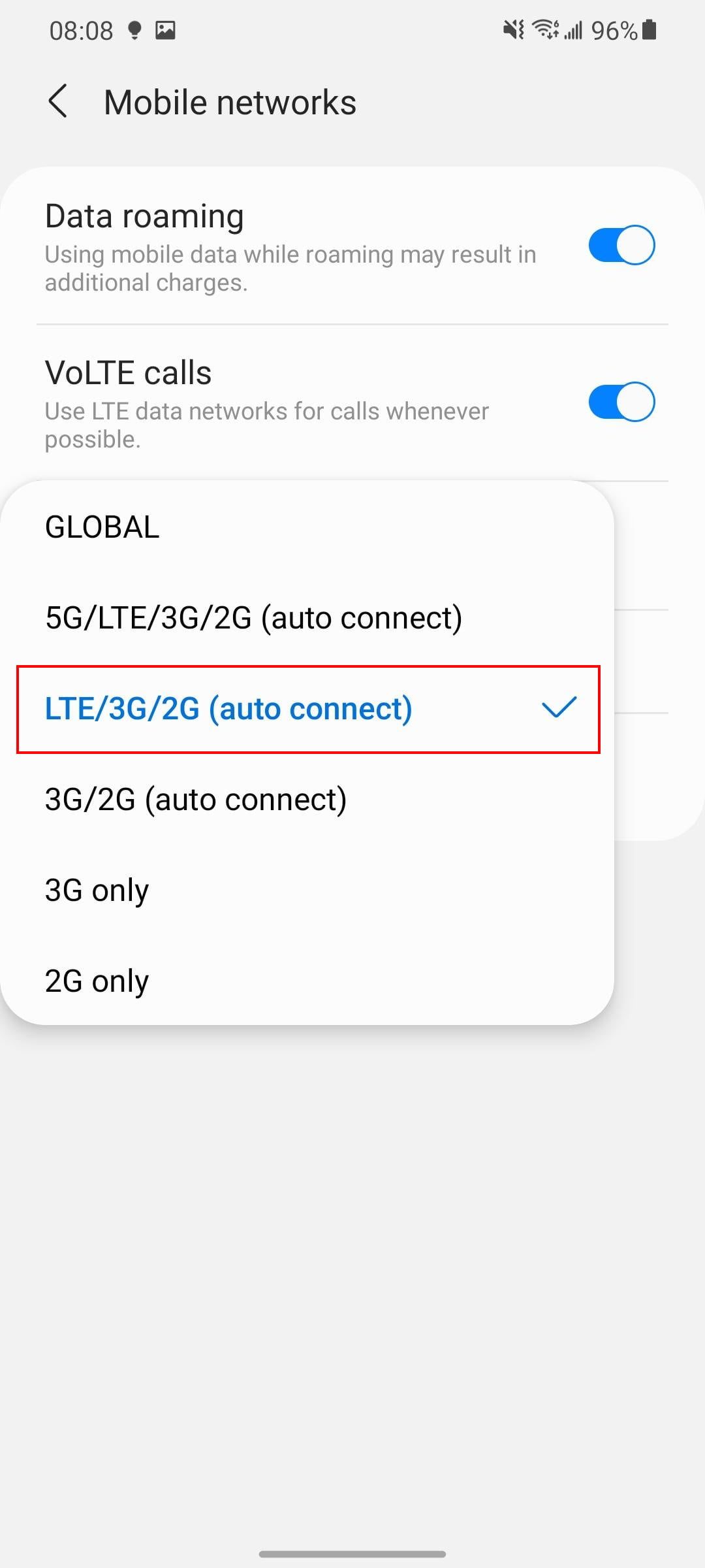 Paso 4: selecciona LTE / 3G / 2G (Auto) de la lista, o una de las otras opciones que no sea 5G para evitar que el teléfono use dicha conectividad. Es fácil volver a activarlo cuando lo quieras de nuevo.
