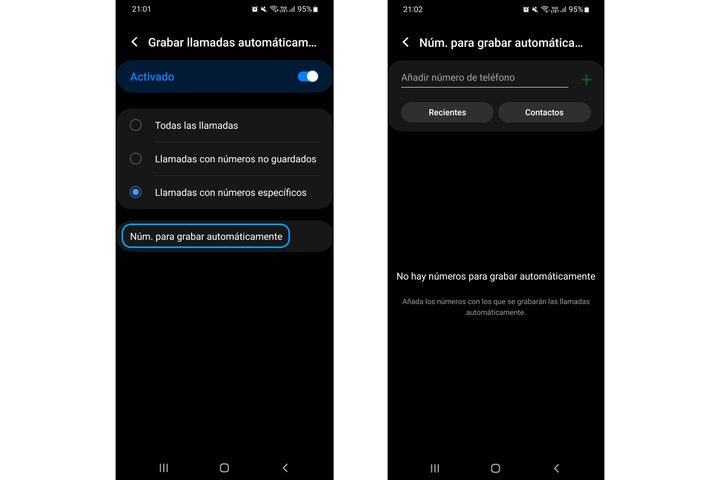 Paso 5: añade los números o selecciona los contactos a los que deseas grabar automáticamente sus llamadas.
