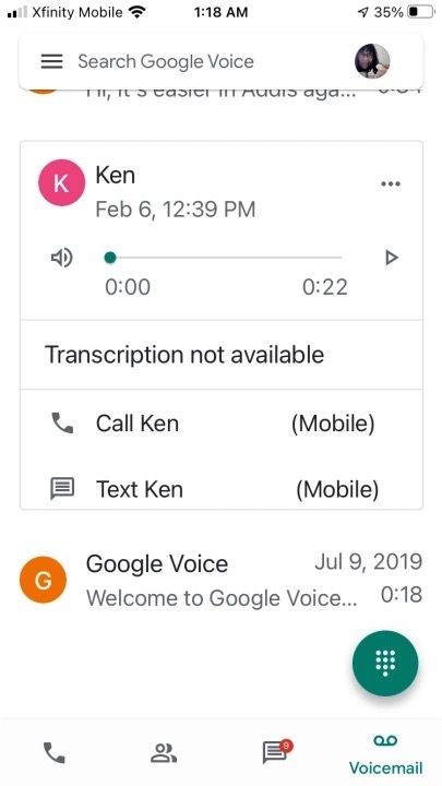 Si todo está configurado correctamente, verás la conversación grabada en las pestañas Llamadas y Correo de voz. Para escuchar la conversación, toca la flecha y sube el volumen.