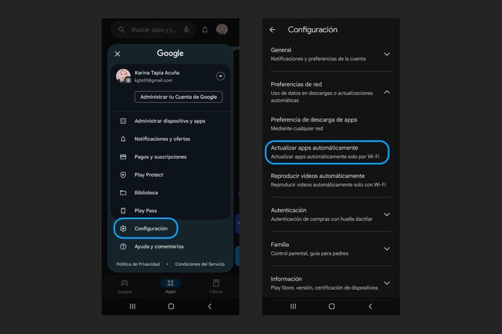 Tanto Android como iPhone ofrecen actualizaciones automáticas de aplicaciones, que deberían estar activadas por defecto. Para verificar si tienes activada esta opción, en tu celular Android, abre la app Google Play Store y toca tu foto de perfil. Luego, ve a Configuración > Preferencias de red > Actualizar aplicaciones automáticamente.