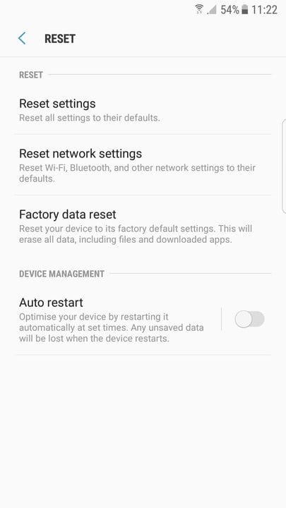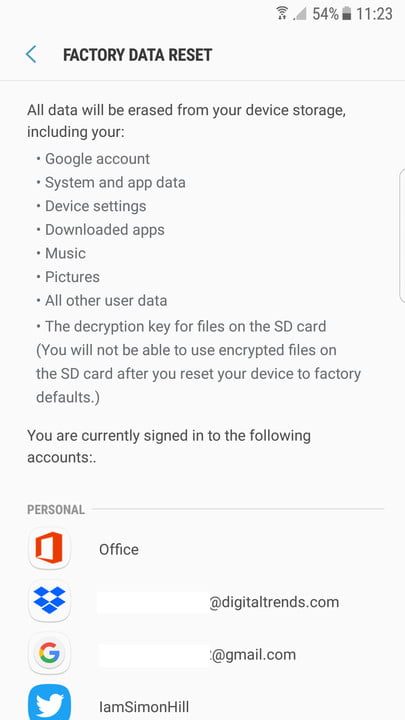 Una vez que hayas eliminado tus cuentas de Google y Samsung, puedes continuar con el restablecimiento de fábrica.