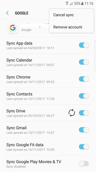 - Lo siguiente que debes hacer es eliminar tu cuenta de Google. En un Samsung Galaxy, ves a Ajustes> Nube y cuentas> Cuentas; toca en el icono de Google, luego toca los tres puntos verticales en la esquina superior derecha o Más> Eliminar cuenta. En un LG G6 o un Google Pixel, ves a Configuración> Cuentas y sincronización> Google; toca los tres puntos verticales en la esquina superior derecha, luego toca Eliminar cuenta. Si tienes más de una cuenta de Google registrada en tu teléfono, asegúrate de eliminarlas todas.