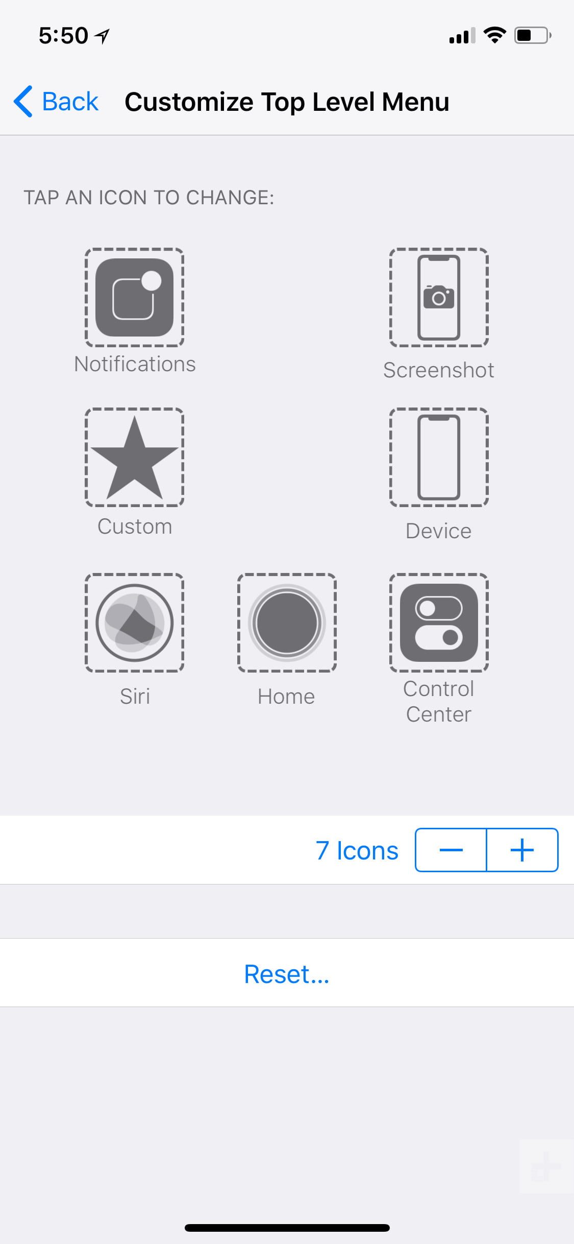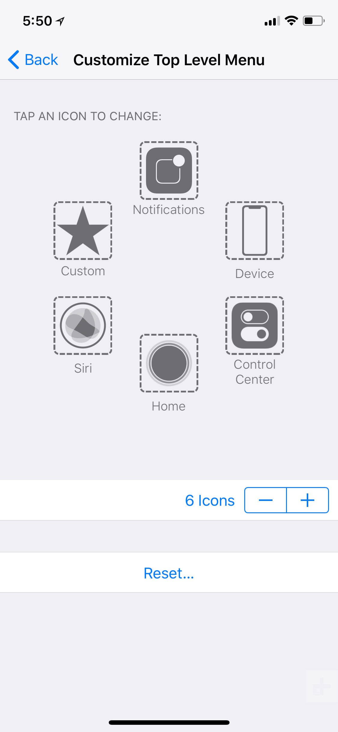 Paso 2: abre el menú de AssistiveTouch o toca el botón. Puedes elegir que la acción de la captura de pantalla se realice en la opción Abrir menú, que es el formato tradicional en el que el menú se abre después de pulsar el botón de AssistiveTouch. Para personalizar el menú, ve a Ajustes>Accesibilidad>Tocar>AssistiveTouch y pulsa Personalizar el menú de nivel superior. Allí, puedes tocar un icono para cambiarlo o agregar otro presionando el icono del signo más en la esquina inferior derecha. Aparecerá una lista de diferentes opciones y puedes desplazarte hacia abajo para agregar una captura de pantalla. Luego, puedes elegir si deseas que el menú se abra con un solo toque, un doble toque, una pulsación larga o un toque 3D. Si solo utilizas AssistiveTouch para las capturas de pantalla, también puedes configurar la acción de realizar una captura de pantalla a cualquiera de esas acciones personalizadas.