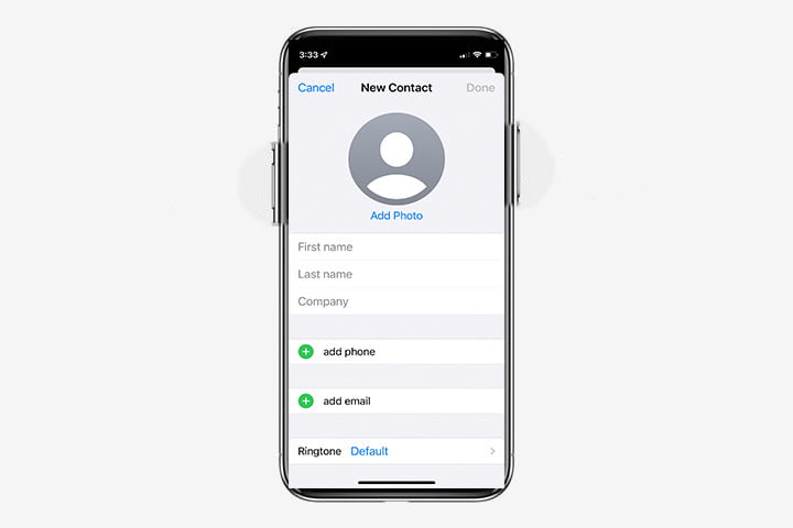 - Asegúrate de tener a tu invitado en tus Contactos, usando la dirección de correo electrónico de su Apple ID. Si no lo están, agrégalo ahora a través de Contactos> Agregar> Ingresar datos> Listo.