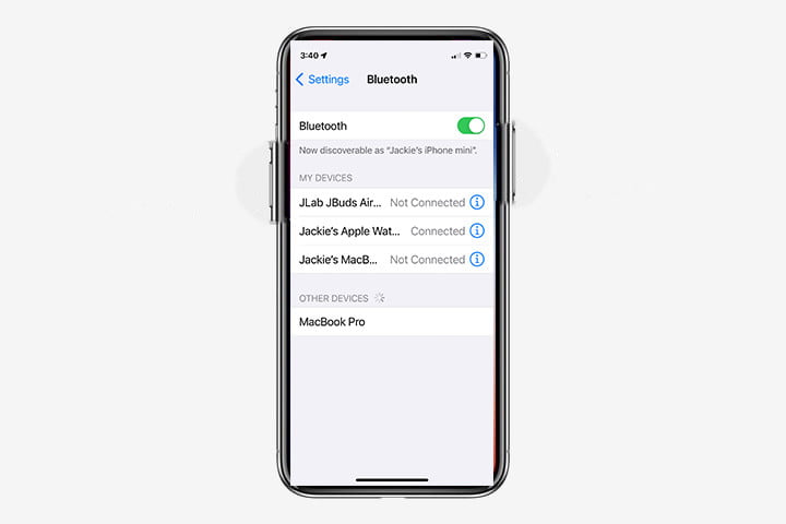 - Activa Bluetooth tanto para tu iPhone como para el dispositivo iOS de tu invitado a través de Configuración> Bluetooth (activar el interruptor).
