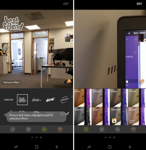 Efectos: pone todos los efectos de la aplicación de la cámara Galaxy S8 en un solo lugar, lo que resulta útil si se te olvida aplicar un efecto antes de sacar una foto.