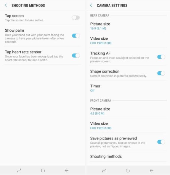 Guardar imágenes previsualizadas: de forma predeterminada, la cámara selfie del Galaxy S8 saca las imágenes guardadas para mostrarte cómo te ves realmente. Al voltear la palanca se mostrarán las fotos verdaderas, en su lugar.