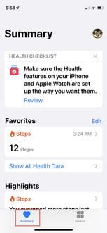 - Abre la app Health en tu iPhone, toca Resumen al fondo de la ventana y localiza Configura ID Médica.