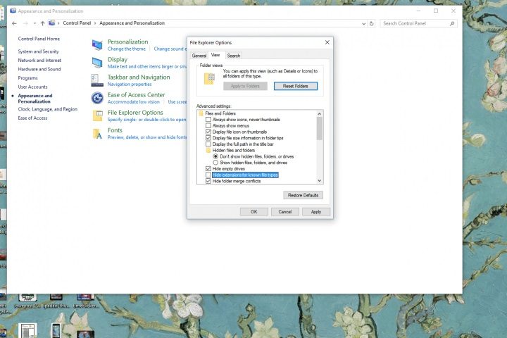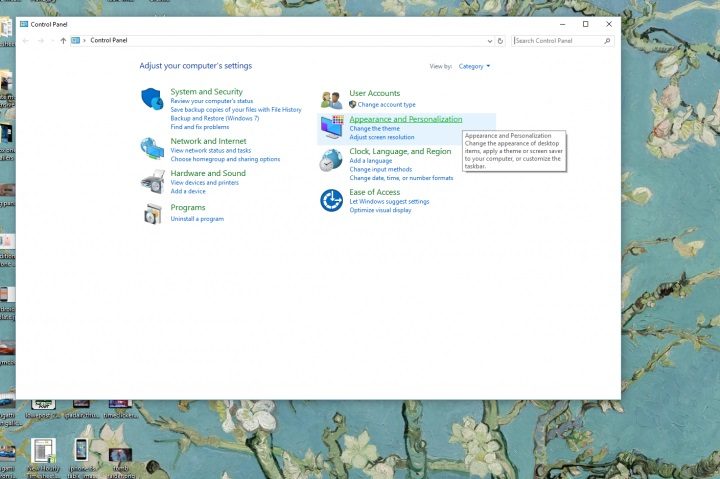 Si eres usuario de Windows, podrías tener problemas en cambiar la extensión del archivo. Esto se da debido a que su sistema no muestra extensiones de archivos. Para cambiar esto, hay que ir a Control Panel (Panel de Control) y luego seleccionar Appearance and Personalization (Apariencia y Personalización). Si lo prefieres, también puedes buscar el Panel de Control en Windows 10.