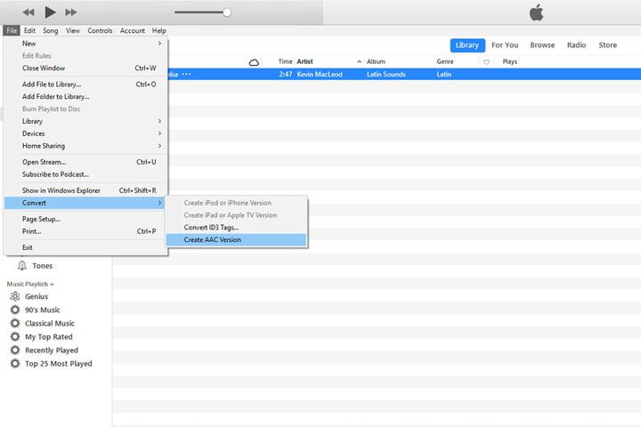 AAC es el formato de audio que Apple utiliza para sus dispositivos. Es esencialmente lo mismo que un MP3 que utiliza menos espacio de almacenamiento. iTunes da a los usuarios la opción de crear una versión AAC de cualquier canción que elijan, lo cual es bueno ya que debes conservar el espacio del disco duro y crear un ringtone. Una vez has elegido los tiempos de tu ringtone, dirígete a File (archivo), Convert (convertir) y Convert to AAC (Convertir a AAC). Ya que hemos alterado los tiempos, lo que estás haciendo es crear una versión AAC de esa sección en específico. Aparecerá en tu biblioteca de iTunes, justo debajo de la canción original.