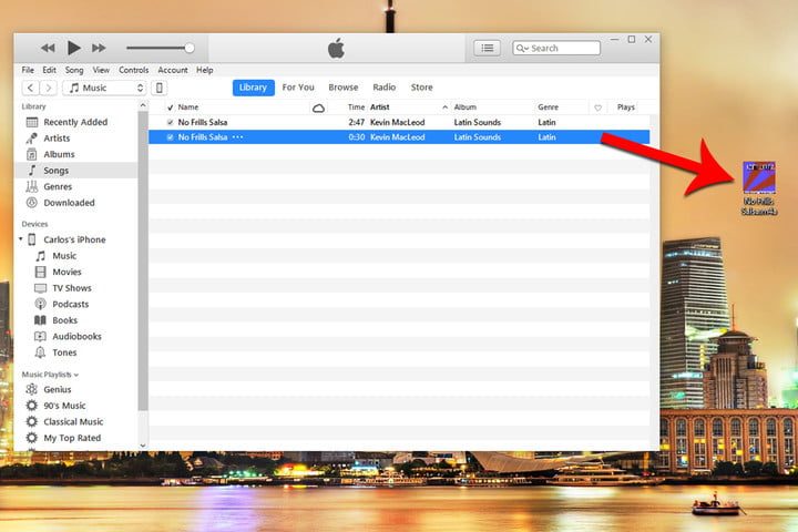 Una vez creado, pulsa la versión AAC de tu canción y arrástrala hacia el escritorio para guardarla en la ubicación que quieras. Esta acción hará una copia del archivo en esa ubicación.