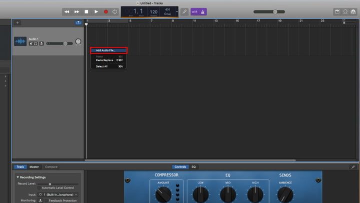 Haz clic derecho en la parte de la pista de audio de la pantalla y seleccione Agregar archivo de audio. Luego, busca el archivo de audio que desea abrir y haz clic en Abrir.
