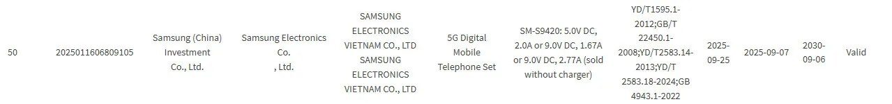 El aparente Galaxy S26 o S26 Pro (número de modelo SM-S9420) también pasó por la web de 3C en septiembre, y aparece con velocidades de carga de 25W. Eso significa que el Galaxy A57 5G podría ofrecer velocidades de carga más rápidas que el Galaxy S26. Consulta la lista del Galaxy S26/S26 Pro a continuación.
