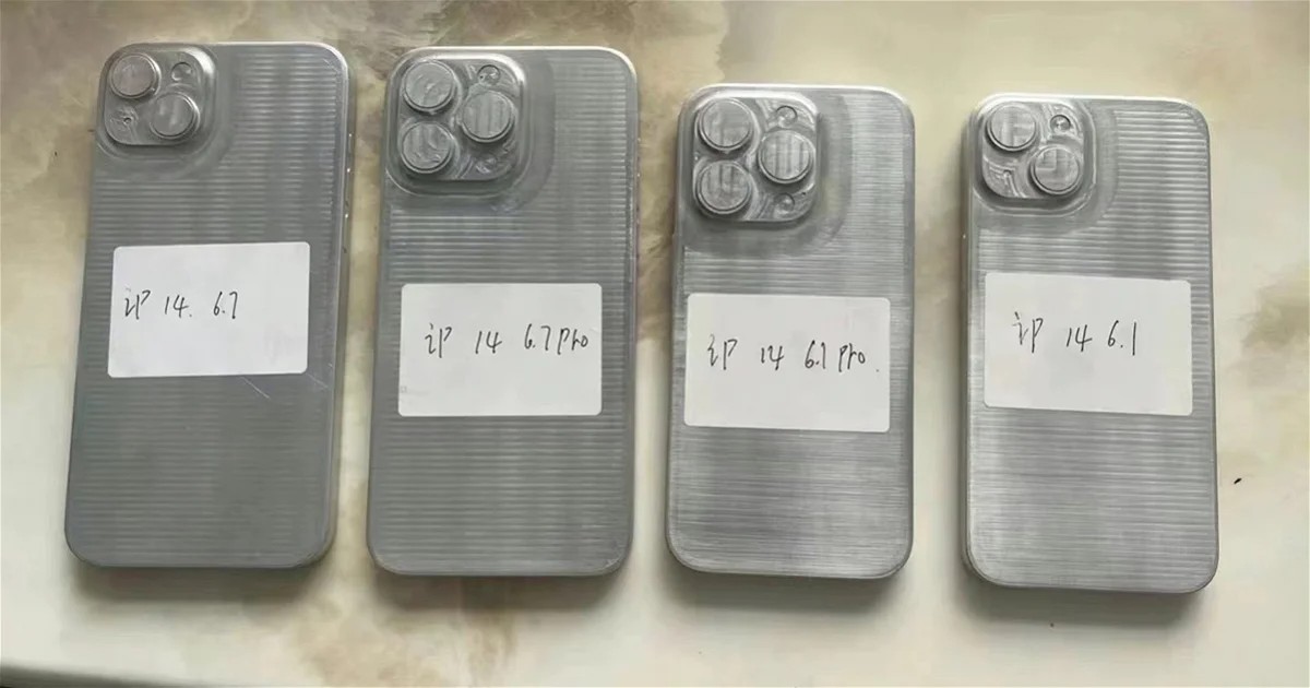 Una imagen muestra cómo lucen los moldes de la línea de iPhone 14, los próximos smartphones de Apple que deberían ser lanzados este año. Estos son los que se utilizan para la confección de accesorios, como las fundas.