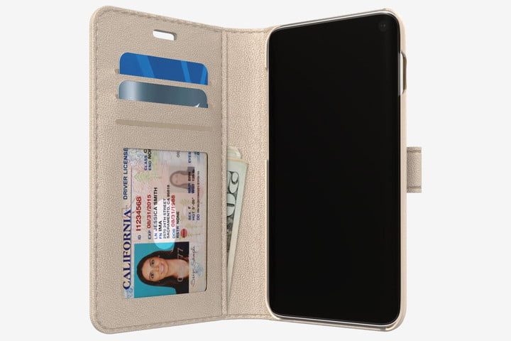 Los que busquen un diseño inteligente y versátil, el Polo Book de Skech ofrece una solución difícil de superar. Cuenta con una parte rígida y mínima para proteger la trasera del Galaxy S10e que se puede quitar de la parte de la billetera. Se puede volver a colocar en su lugar gracias a un respaldo magnético que también funciona con soportes magnéticos para automóviles. La cartera tiene tres ranuras para tarjetas y una ranura con ventana para documentos identificativos, así como una parte más grande para billetes. También se puede plegar para que actúe como soporte horizontal y tiene un cierre magnético. Este funda viene en variedades negras o doradas.
