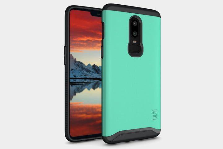 Spigen ha dado un estilo ejecutivo a este típico estuche de TPU al agregar paneles de fibra de carbono en la parte posterior y algunos reflejos brillantes para romper el acabado negro mate. Tiene protectores de aire en las esquinas, un labio elevado alrededor de la pantalla y un patrón de telaraña en su interior, diseñado para proteger tu OnePlus 6 en caso de caídas. También encontrarás aberturas perfectamente cortadas para los puertos, la cámara y otras funciones, junto con cubiertas de botones táctiles, incluida una cubierta del botón de encendido con textura.