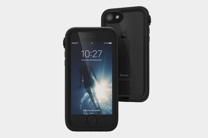 Las fundas impermeables para tu iPhone no tienen que ser feas. El borde de la funda Hitcase está hecha de aluminio en colores diseñados específicamente para que coincidan con los de tu iPhone 7. El panel frontal flexible incluye protección incorporada en la pantalla y hace que sea fácil de colocar. La funda obtiene una calificación IP68 y Hitcase dice que funciona a profundidades de hasta 10 pies (3 metros). También ofrece protección contra caídas de hasta 2 metros, aunque el aluminio puede romperse o rayarse. Hay cubiertas de botones metálicos en el costado y un dial para el interruptor.