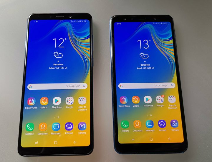 A priori, cuando vemos los dos teléfonos uno al lado del otro, y de frente, no encontramos grandes diferencias. Lo único es que la pantalla del A9 es un poco más grande que la del A7, aunque tampoco demasiado. Después, ambos teléfonos tienen unos biseles del mismo tamaño que permiten colocar, sobre todo en la parte superior, la cámara frontal y otros sensores como el reconocimiento facial.