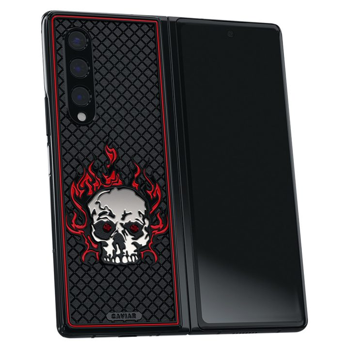 El Z Fold 3 en versión Ragnarok está hecho de titanio y pintado a mano, con incrustaciones de rubí en los ojos de la calavera. Su precio será de $10,770 dólares.