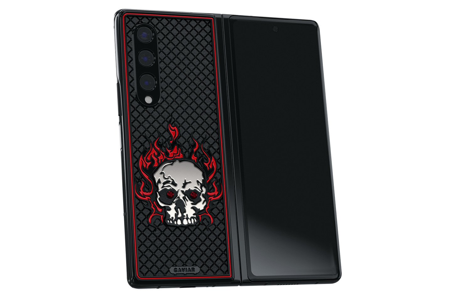 El Z Fold 3 en versión Ragnarok está hecho de titanio y pintado a mano, con incrustaciones de rubí en los ojos de la calavera. Su precio será de $10,770 dólares.
