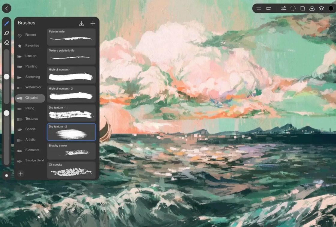 - Pinceles realistas: Una colección diversa de pinceles que simulan materiales tradicionales como acuarelas, óleos y carboncillo, ofreciendo una experiencia auténtica de pintura.