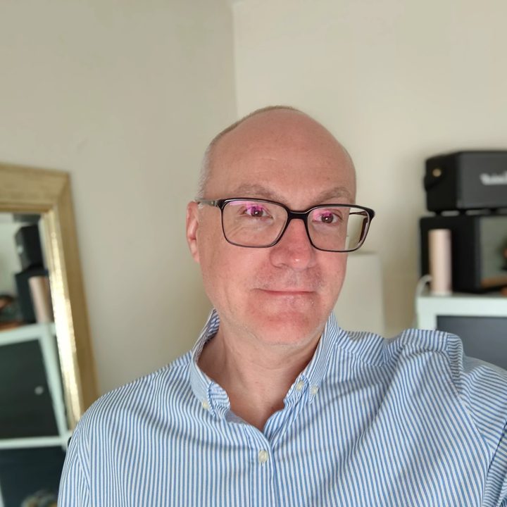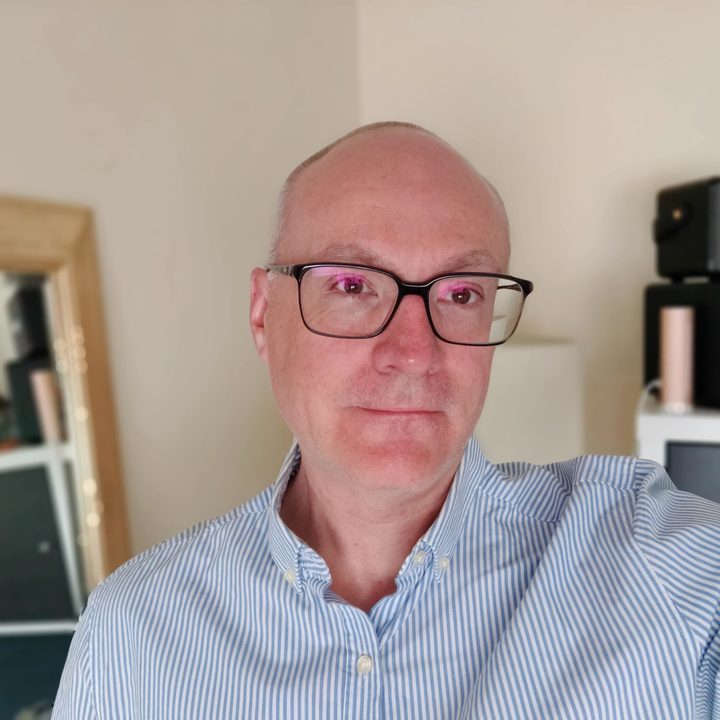 El OnePlus 8 Pro me hace ver muy sonrojado (no lo estaba) y me pregunto si esto se debe al tinte de mis anteojos, ya que es considerablemente más rosado aquí que en las otras imágenes. Aparte del color, la definición de la imagen es buena y el efecto de retrato es sorprendentemente efectivo, incluso alrededor del borde de mis lentes. Con algo de edición es compartible.