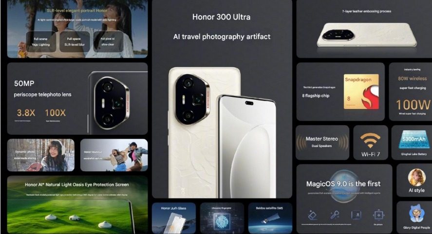 Honor 300 Ultra viene en colores Blanco Camelia y Negro Roca Tinta. El precio comienza en CNY 4,199 ($ 577) y alcanza un máximo de CNY 4,699 ($ 646) para el modelo de 16 GB de RAM y 1 TB.