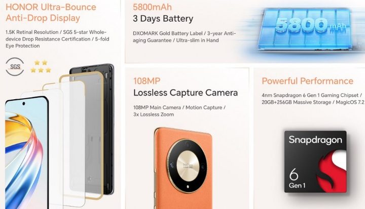 Honor Magic6 Lite arranca Magic UI 7.2 basado en Android 13 y cuenta con una batería de 5.800 mAh con soporte de carga de 35W, que promete una carga que puede durar hasta 3 días.