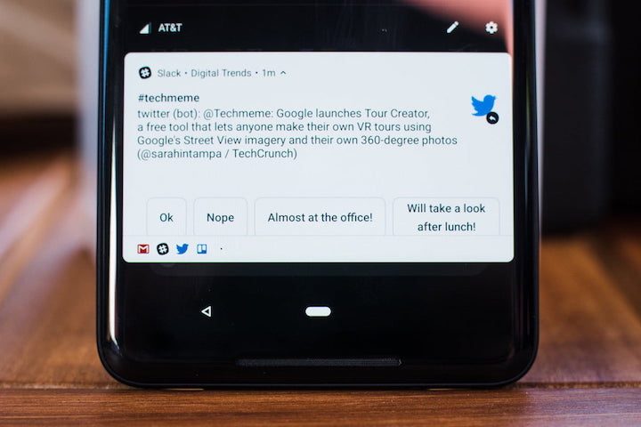 Otra nueva característica útil en Android 9.0 es la llamada Smart Reply dentro de las notificaciones. Por ahora, solo está disponible en aplicaciones seleccionadas, pero te permite responder fácilmente a mensajes con frases básicas (y que mejoran con el tiempo) sin tener que escribir nada. Aún puedes usar la función Respuesta rápida para responder sin abrir la aplicación, y hay otras opciones según la aplicación, como Marcar como leído y Eliminar.