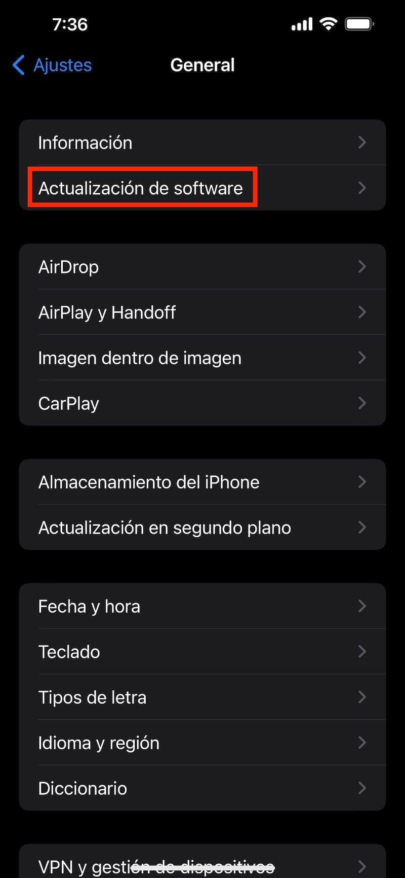 En Ajustes, ve a General, abre Actualización de Software y en la parte de abajo lo encontrarás. ¡Es muy simple!