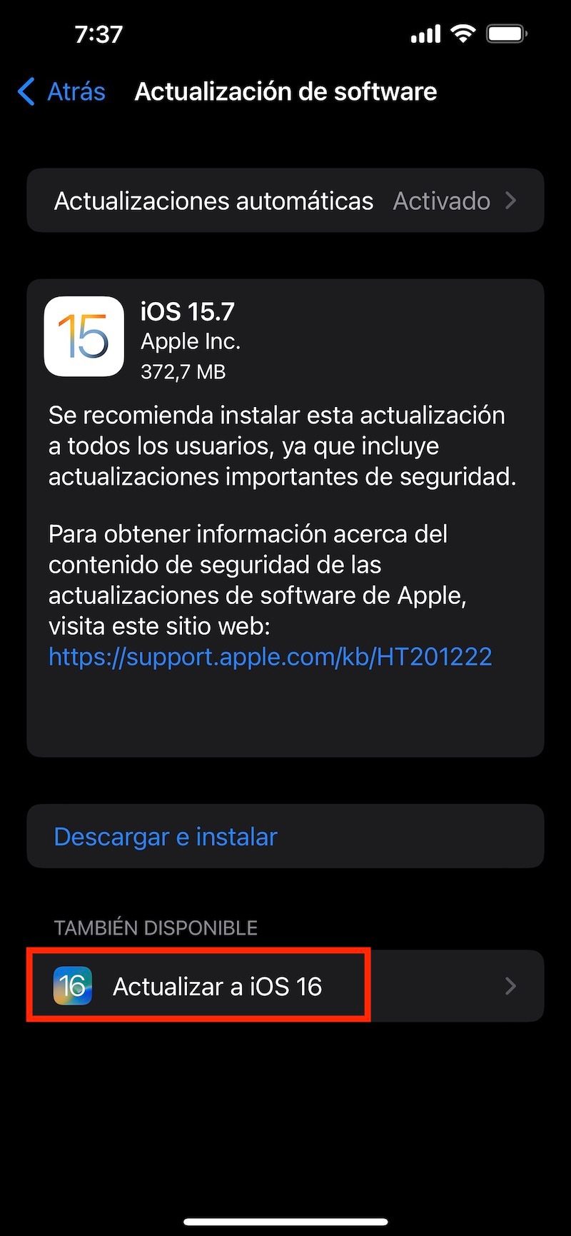 ¿Dónde encuentro la actualización para iOS 16 en mi iPhone?