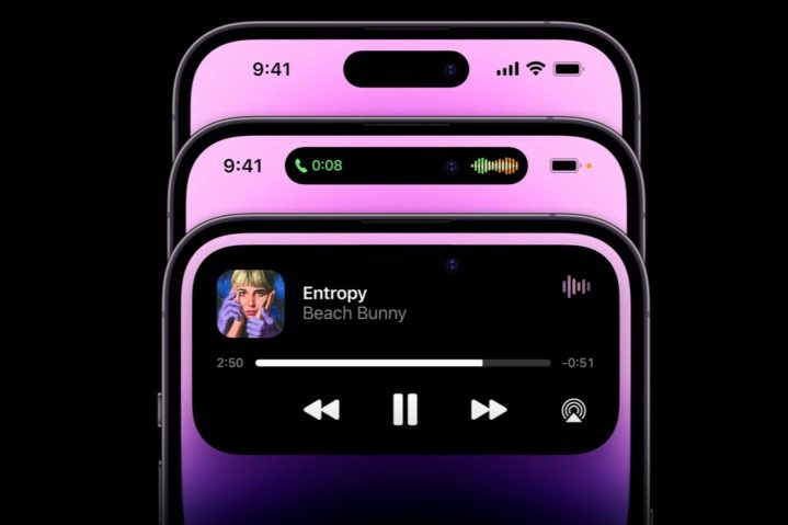 Con la eliminación de la muesca en el iPhone 14 Pro, el espacio que alberga la cámara y los sensores Face ID –conocida ahora como Dynamic Island– se expande para mostrarte la música que se está reproduciendo, informarte de llamadas, pagos sin contacto y más. Toca y mantén presionada la Dynamic Island para interactuar con ella.