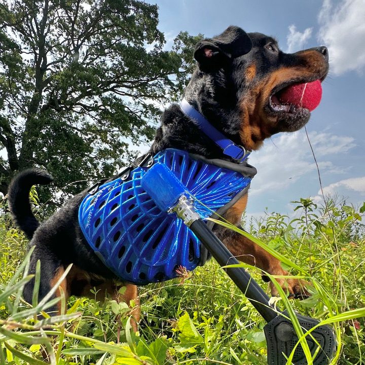 Cleo: Cleo fue descubierta en PetFinder por el estudiante de ingeniería biomédica Jordan durante el último semestre de su programa de maestría, después de pasar un tiempo como callejera en Oklahoma con lesiones por causas desconocidas. Después de su adopción, Jordan dedicó unos dos años a investigar perros, prótesis y la industria biomédica con la esperanza de algún día fabricar una prótesis para Cleo. Después de descubrir 3DPets e incluso completar algún trabajo independiente con ellos, Jordan trabajó minuciosamente con Cleo para ayudarla a desarrollar su confianza con sus nuevas prótesis y recuperar su movilidad, y él puede decir que ella está muy agradecida.