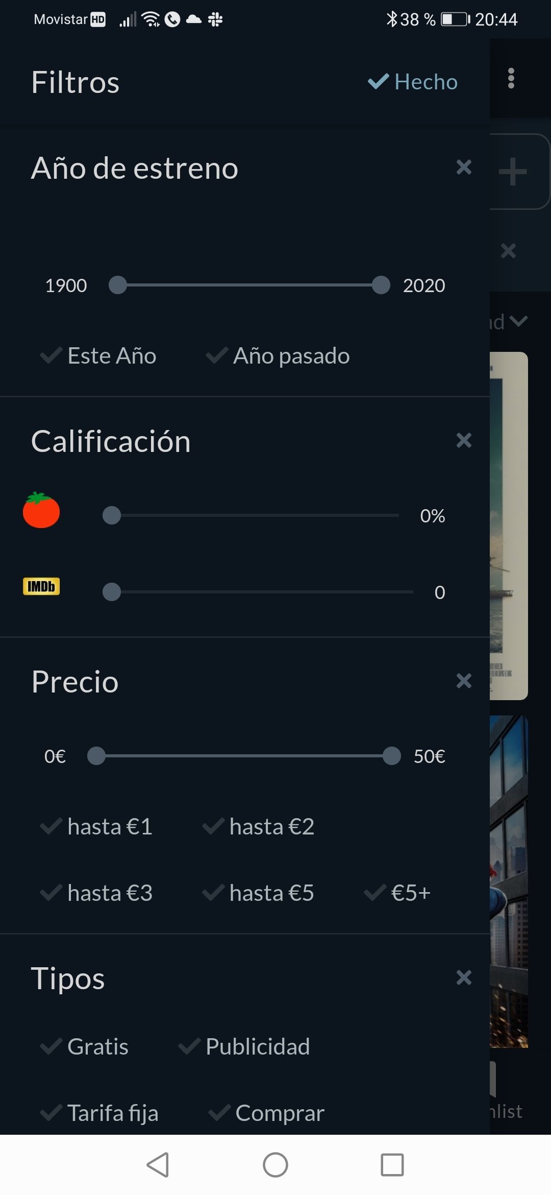 Para acotar las búsquedas se puede recurrir a muchos filtros seleccionando el icono del embudo, al que se accede a través de los apartados Novedades, Populares y Watchlist. Este buscador va mucho más allá del género o la clasificación por edades: permite delimitar desde el año de estreno hasta la calificación, el precio o la calidad de la resolución, entre otros parámetros.