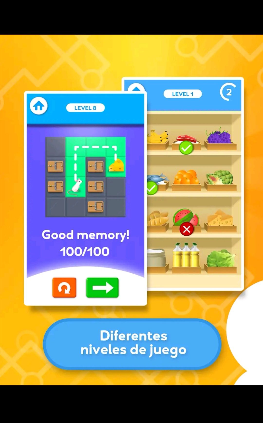 Con Entrena tu cerebro – juegos de memoria, obtendrás una aplicación enfocada para la estimulación cognitiva y el entrenamiento de la memoria, completamente gratis. Gracias a una completa selección de juegos enfocados en desarrollar tus habilidades memorísticas, este programa ha sido creado para poner a prueba tu capacidad de retención de conceptos, además de la calidad de tu memoria al corto y largo plazo. Desarrollada tanto para niños como adultos, cada juego cuenta con diversos niveles para que puedas practicar en forma gradual, aumentando de nivel a medida que vas mejorando tu rendimiento. Desarrollada por Senior Games en colaboración con expertos en neurociencia y psiquiatría, Entrena tu cerebro tiene como objetivo principal un contenido visual que sirve como complemento a los tratamientos de las enfermedades mentales como la demencia senil.
