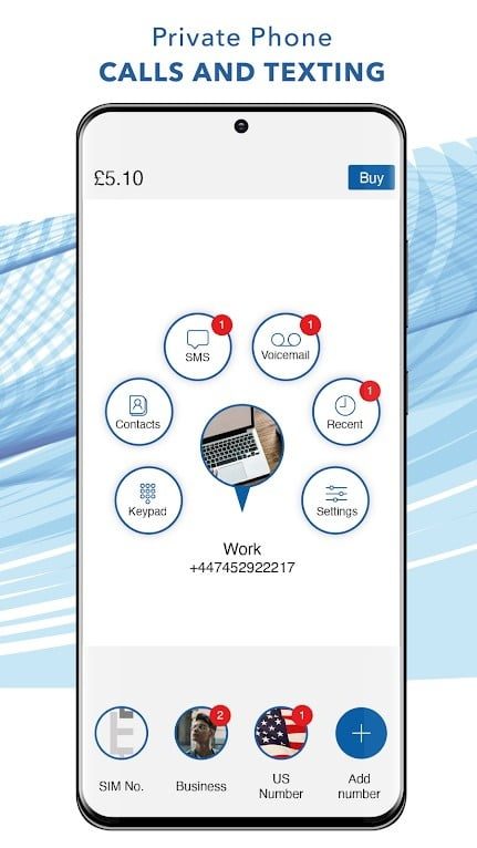 Cloud SIM facilita la recepción de mensajes de texto y llamadas a tu nuevo número, ofrece chat de texto gratuito entre teléfonos en todo el mundo usando wifi o datos, te permite compartir imágenes y usa el acceso local desde tus minutos gratuitos mientras viajas o si no tienes internet. Además, ofrece un correo de voz dedicado para cada número de teléfono móvil por separado y puedes comprar hasta cuatro números virtuales.